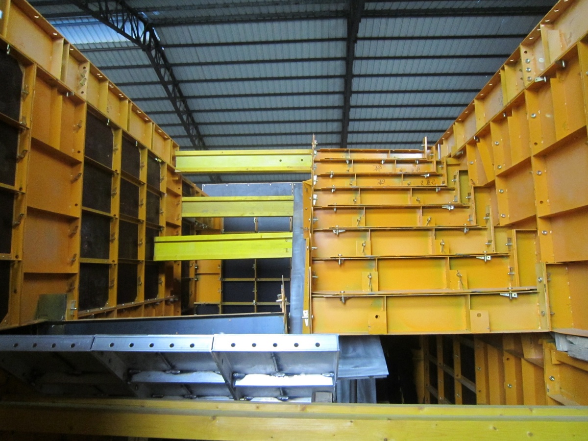 SHANDONG ZEEMO — производитель евроопалубки в Китае. Полное название системы опалубки со стальной рамой 63 — это система опалубки из фанеры со стальной рамой 63, ее жесткость высокая, поверхность гладкая, ее можно скрепить и демонтировать полностью или по отдельности. Система опалубки со стальной рамой 63 состоит из стального каркаса, ребра жесткости и водонепроницаемой фанеры. Каркас стальной с прижимным ребром на поверхности, по краям имеются отверстия. В усиливающем ребре используется угловой железо, материал стальной рамы и усиливающего ребра — сталь 45#. Уголок косого железа и армирующего места соединяется с поверхностной панелью с помощью плужных болтов. Поверхностная панель изготовлена из водонепроницаемой фанеры толщиной 12 мм. Коэффициент бокового давления составляет 50 кН/м2.
