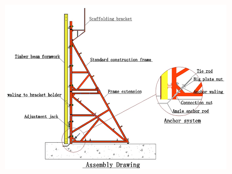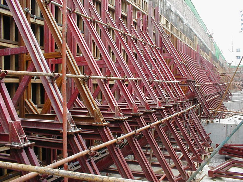 1. Боковое давление бетона полностью поддерживается распорками, горизонтальными ремнями и постоянными анкерами, поэтому сквозные анкеры не нужны.